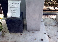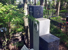 Так выглядело место захоронения на момент окончания работы: деревянный крест покрыт защитным раствором; мраморные изделия отшлифованы и покрыты гидрофобной субстанцией, стыки элементов промазаны белым герметиком; полые столбики, восстановлены; в цветнике заменена земля и посажен газон.